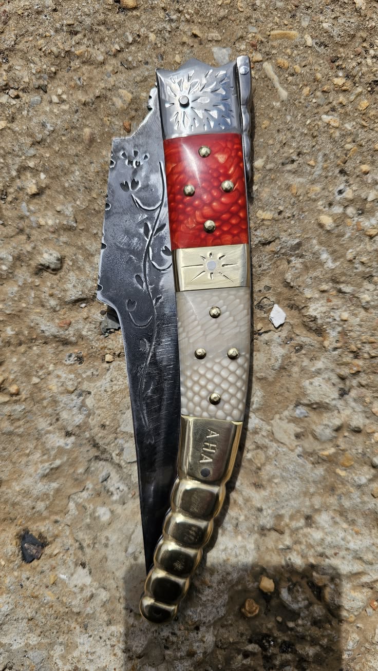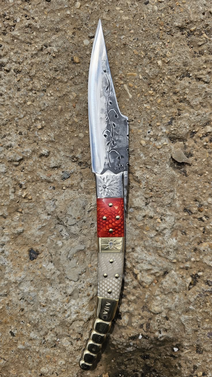 Hoja de Acero inoxidable mova, el acero molibdeno vanadio es un tipo de acero inoxidable de alta calidad, comúnmente utilizado en cuchillería profesional y de cocina. Combina cromo para la resistencia a la corrosión con molibdeno y vanadio para aumentar la dureza, tenacidad y retención del filo, ofreciendo un excelente equilibrio para herramientas de corte, muelle acero al carbono 80 crv2, cachas en Juma Dragón, forros, virola, palanquilla, rebajo y remaches, en acero inoxidable 304 y Latón.