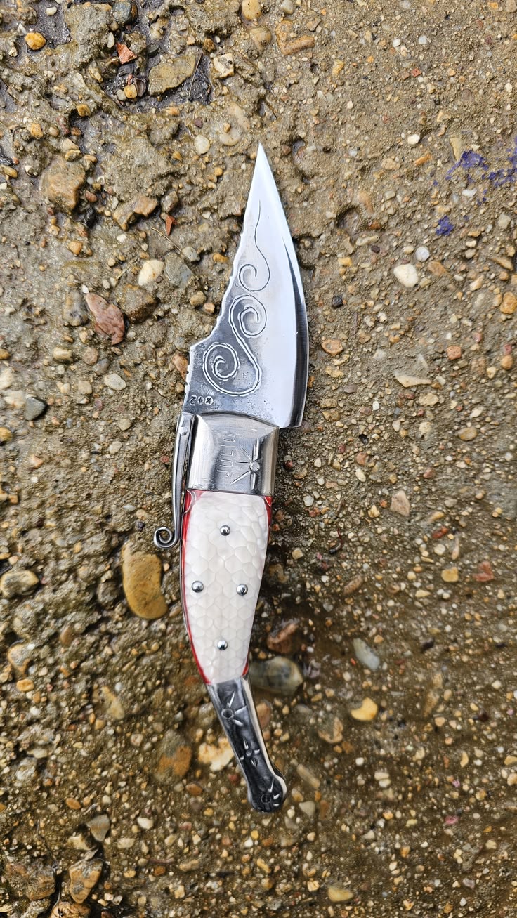 Hola amigo, cada navaja que hago, la hago para mi, pero si la quieres, intentare hacer otra parecida para ocupar su lugar, y nunca lo consigo, aunque la nueva pieza también tiene su encanto.