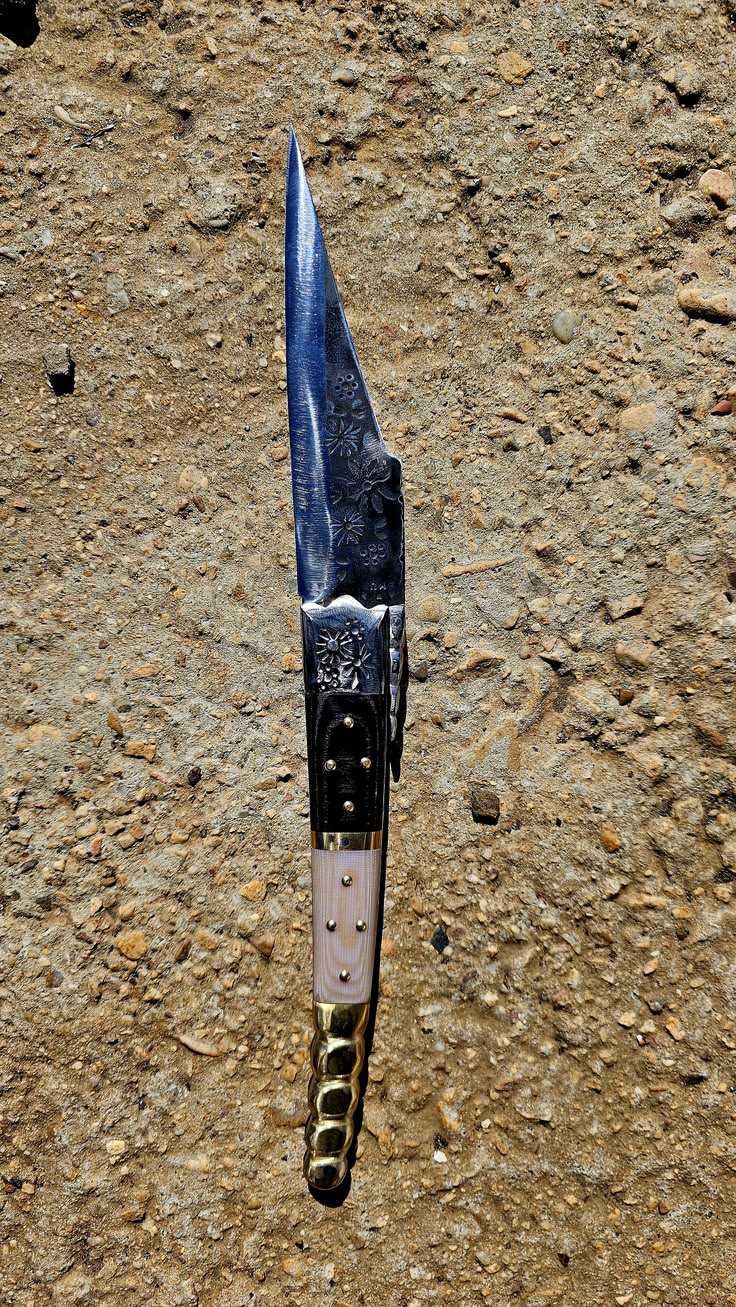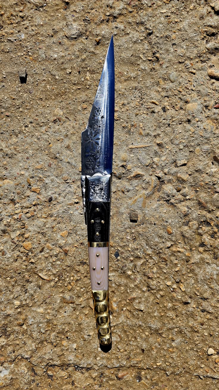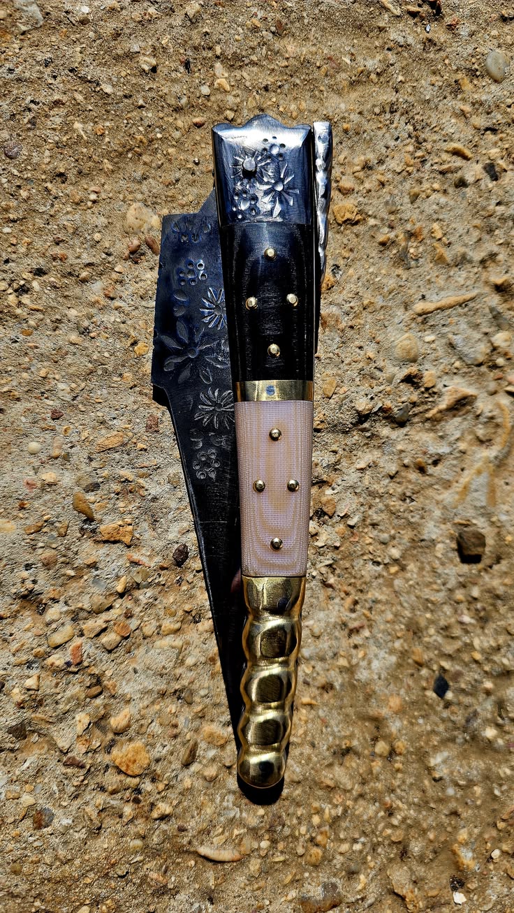 Hoja de Acero inoxidable mova, el acero molibdeno vanadio es un tipo de acero inoxidable de alta calidad, comúnmente utilizado en cuchillería profesional y de cocina. Combina cromo para la resistencia a la corrosión con molibdeno y vanadio para aumentar la dureza, tenacidad y retención del filo, ofreciendo un excelente equilibrio para herramientas de corte, cachas en Mikarta negra y Mikarta hueso, forros, virola, palanquilla, rebajo y remaches, en acero inoxidable 304 y Latón .