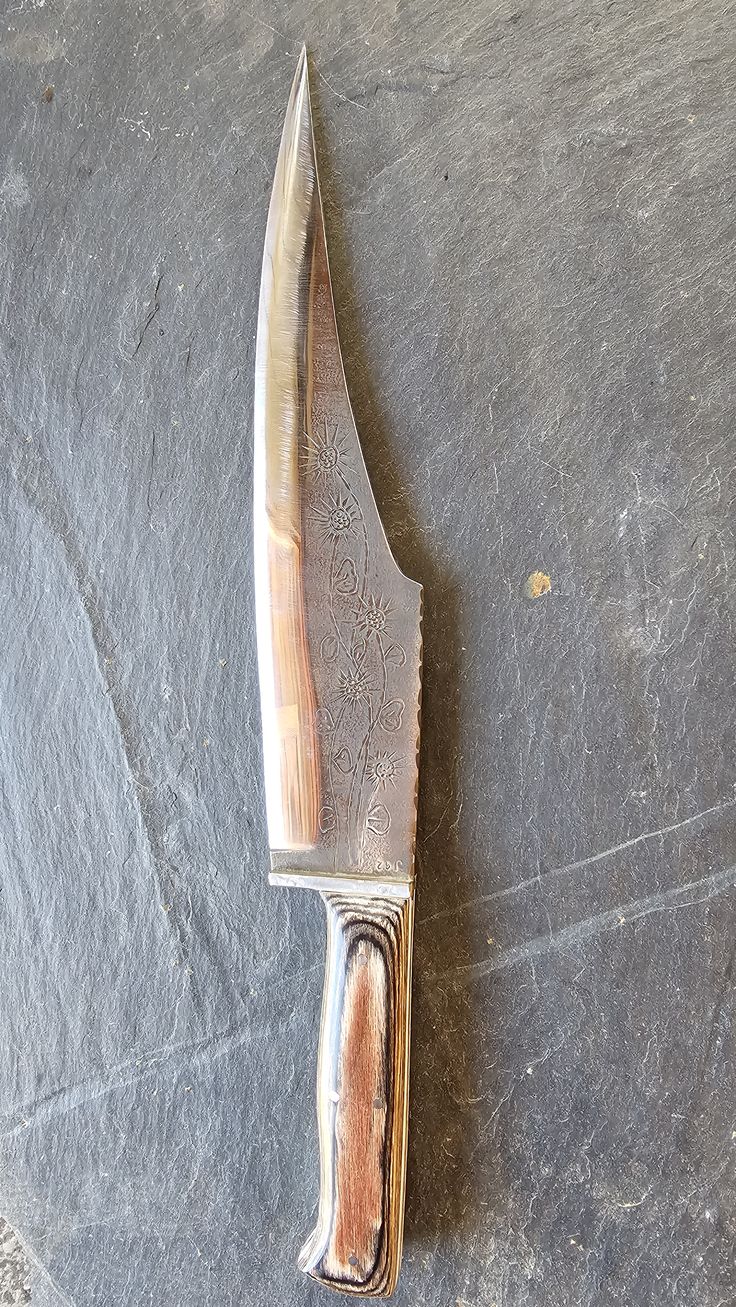 Hoja de Acero inoxidable mova, cachas en Mikarta y monedas, remaches, en acero inoxidable 304.
