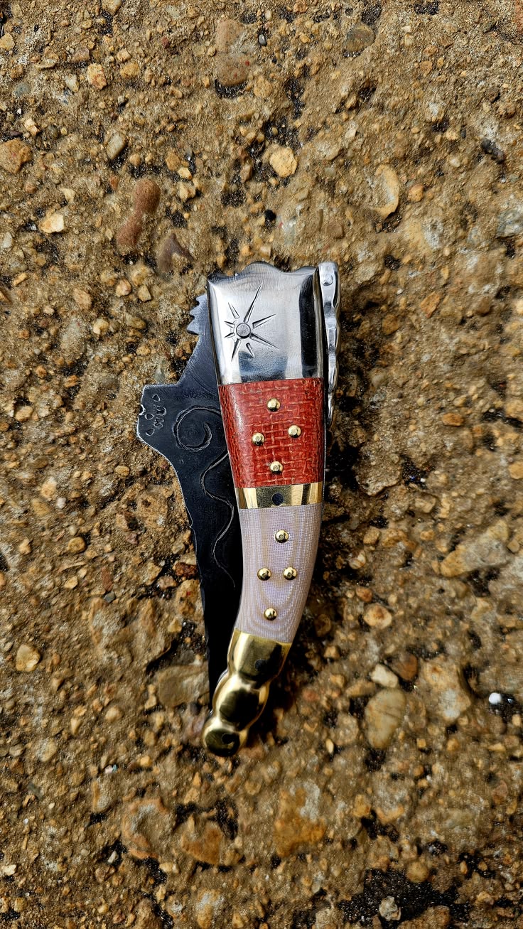 Hoja de Acero inoxidable mova, el acero molibdeno vanadio es un tipo de acero inoxidable de alta calidad, comúnmente utilizado en cuchillería profesional y de cocina. Combina cromo para la resistencia a la corrosión con molibdeno y vanadio para aumentar la dureza, tenacidad y retención del filo, ofreciendo un excelente equilibrio para herramientas de corte, muelle acero al carbono 80 crv2, cachas en Mikarta, forros, virola, rebajo, palanquilla y remaches, en acero inoxidable 304 y Latón.