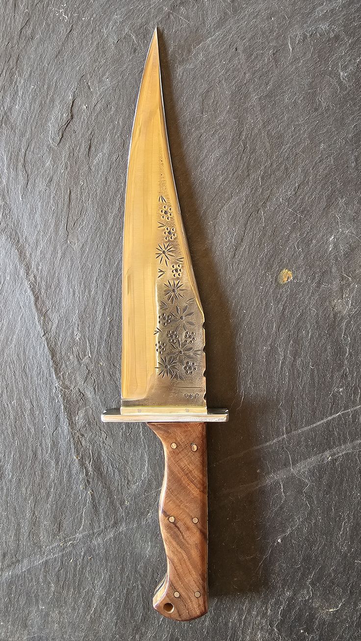Hoja de Acero inoxidable mova, cachas en madera exotica, remaches, en acero inoxidable 304 y Latón.